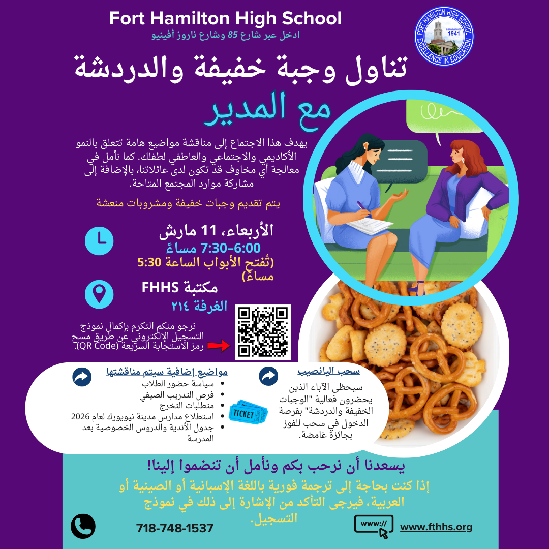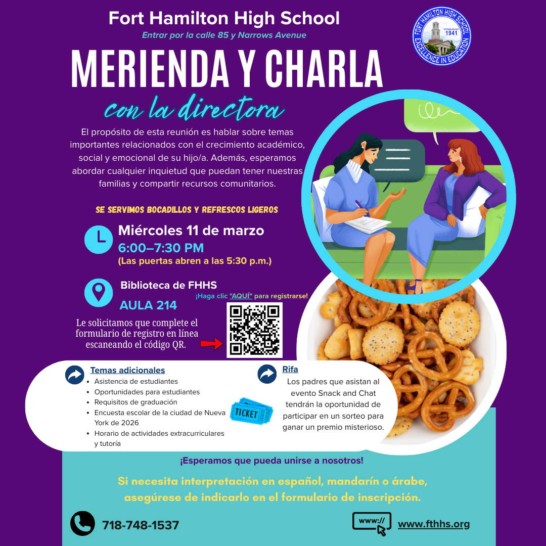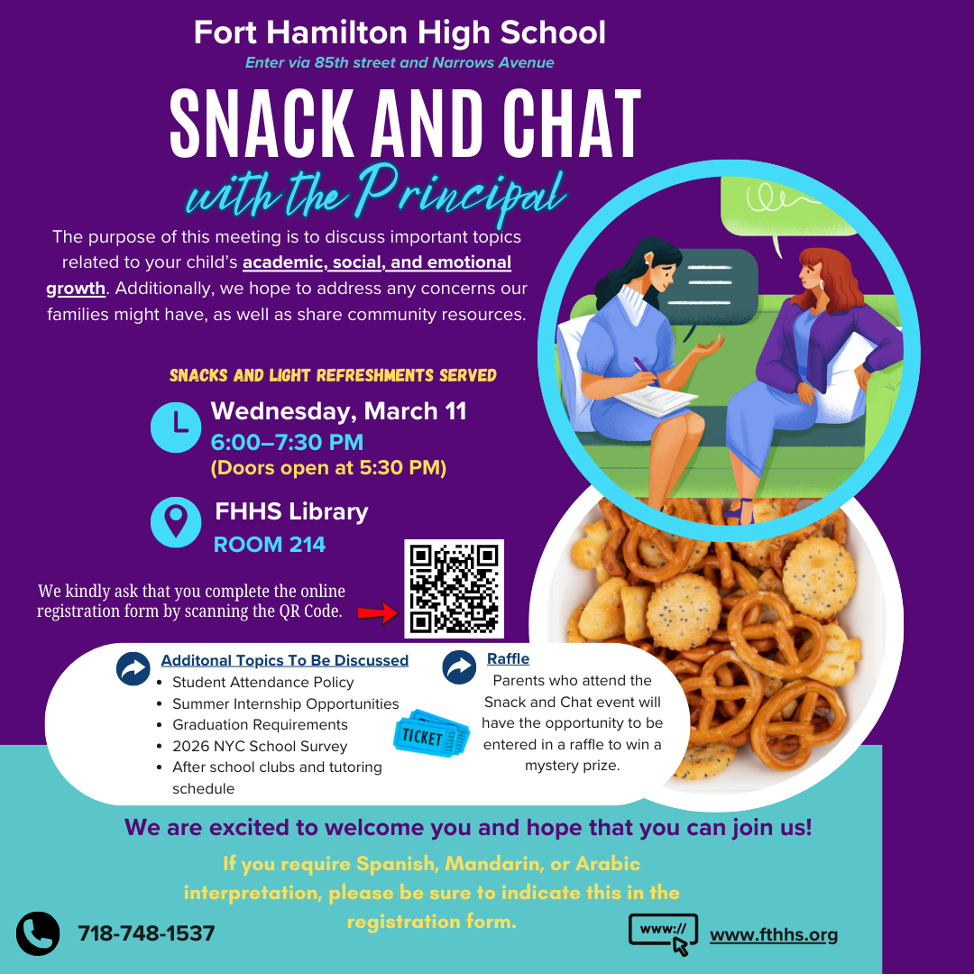 Snack and Chat with Principal Houlihan- March 11, 2026 MARCH 2026 SNACK AND CHAT FLYER (Instagram Post)